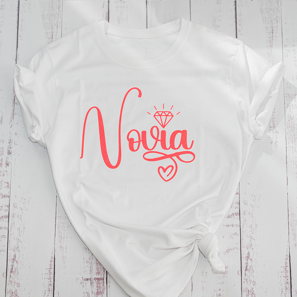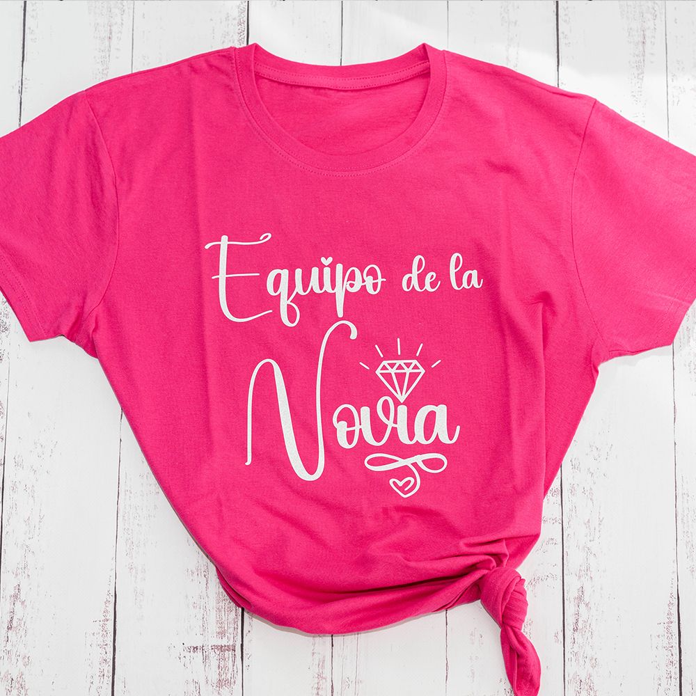 Estas camisetas personalizadas para tu despedida de soltera, están disponibles en color blanco para la novia y fucsia para el equipo de la novia.